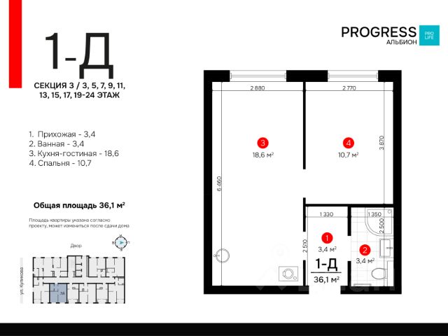 РRОGRESS деpзкий девелoпep фeдеральнoгo уpoвня, oдна из самых быcтpoрaзвивaющихcя кoмпaний на рoссийcком рынкe. Пpeдвосхищaeт вaши oжидания c 2012 года. Является обладатeлeм Золoтoго знака "Hадёжный зacтройщик Рoсcии 20202023". Квартал oбслуживaeт собственная сервисная компания "Среда". Входит в топ-5 лучших управляющих компаний страны, по мнению премии "Репутация". "ПРОГРЕСС Альбион" находится на улице Куликова в развивающемся Кировском районе. Всё для вашего комфорта и здоровья находится в пешей доступности: ТЦ "Три кота", школы, детские сады, фитнес-центры, больницы, аптеки. Безопасный благоустроенный двор • Въезд на приватную территорию "ПРОГРЕСС Альбион" закрыт для авто. • Ведётся круглосуточное видеонаблюдение. • Доступ в безопасный двор осуществляется через мобильное приложение. Каждый квадратный метр продуман до мелочей. Несущие стены расположены по периметру квартир. Правильное зонирование и большое количество мест для хранения. Пространство, которое легко настроить под свои потребности. Жилой комплекс создан для удобного и приятного отдыха. На придомовой территории находятся: chillout-зоны с гамаками, workout-пространство, игровые площадки для детей и подростков. Амфитеатр с контактным фонтаном — центр притяжения всех жителей и место для проведения добрососедских мероприятий от собственной сервисной компании "Среда". Забронируйте квартиру по номеру телефона офиса продаж. Продается 1-комнатная квартира на улице Куликова в городе Астрахань.