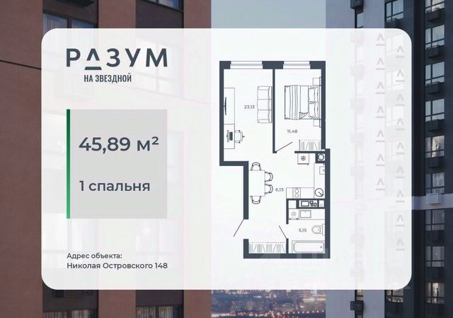 РАЗУМ на Звездной — высотный жилой комплекс компании РАЗУМ, создателя Сердце Каспия и Наследие. Здесь есть: развитый район, закрытая безопасная территория и транспортная доступность. Три 26-этажных дома расположены в границах ул. Звездной и Николая Островского. В пешей доступности: - 3 школы; - 4 государственных детских сада; - гипермаркет; - супермаркеты; - развивающие образовательные центры. РАЗУМ на Звездной — это: - 60 % озеленения в благоустройстве, детские игровые конструкции и зоны отдыха выполнены из экологичных материалов; - многоуровневое освещение территории с архитектурной подсветкой комплекса; - закрытая территория комплекса и видеонаблюдение по периметру и в холлах; - безбарьерная среда на территории жилого комплекса: удобство для велосипедистов, родителей с маленькими детьми и путешественников с большими чемоданами; - уютная зона ожидания с мягкой мебелью в холлах проекта и раздельные зоны под колясочные и велосипедные; - кладовые помещения на каждом этаже. В проекте РАЗУМ на Звездной представлено 13 планировочных решений от 21,08 м² до 63,39 м². Есть квартиры с предчистовой отделкой. В квартирах выровнены стены, выполнена полусухая стяжка пола, установлены радиаторы и трехконтурный газовый котел. В квартиру заведено электричество и установлена входная дверь.