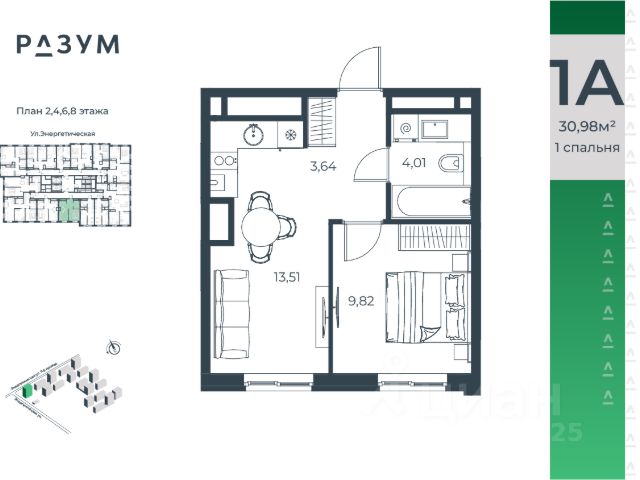 1-КОМНАТНАЯ КВАРТИРА 40,4 М²