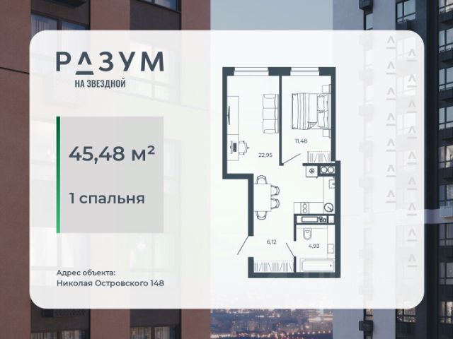 РАЗУМ на Звездной — высотный жилой комплекс компании РАЗУМ, создателя Сердце Каспия и Наследие. Здесь есть: развитый район, закрытая безопасная территория и транспортная доступность. Три 26-этажных дома расположены в границах ул. Звездной и Николая Островского. В пешей доступности: - 3 школы; - 4 государственных детских сада; - гипермаркет; - супермаркеты; - развивающие образовательные центры. РАЗУМ на Звездной — это: - 60 % озеленения в благоустройстве, детские игровые конструкции и зоны отдыха выполнены из экологичных материалов; - многоуровневое освещение территории с архитектурной подсветкой комплекса; - закрытая территория комплекса и видеонаблюдение по периметру и в холлах; - безбарьерная среда на территории жилого комплекса: удобство для велосипедистов, родителей с маленькими детьми и путешественников с большими чемоданами; - уютная зона ожидания с мягкой мебелью в холлах проекта и раздельные зоны под колясочные и велосипедные; - кладовые помещения на каждом этаже. В проекте РАЗУМ на Звездной представлено 13 планировочных решений от 21,08 м² до 63,39 м². Есть квартиры с предчистовой отделкой. В квартирах выровнены стены, выполнена полусухая стяжка пола, установлены радиаторы и трехконтурный газовый котел. В квартиру заведено электричество и установлена входная дверь.
