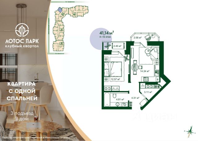 Вашему выбору предлагаются различные планировочные решения: одно-, двух- и трёхкомнатные квартиры.