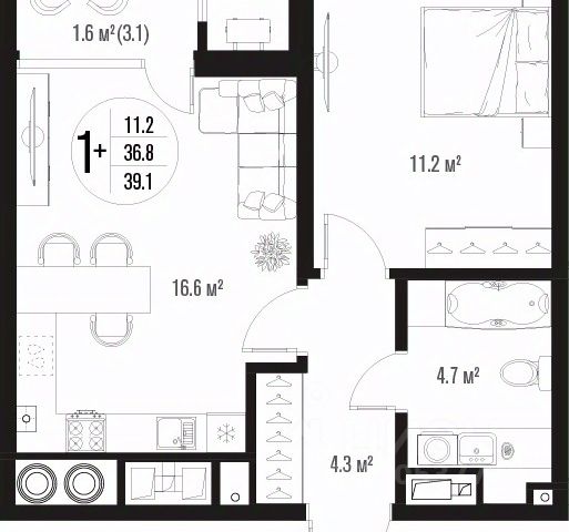 • ✅ Минимальная площадь: 36 м²