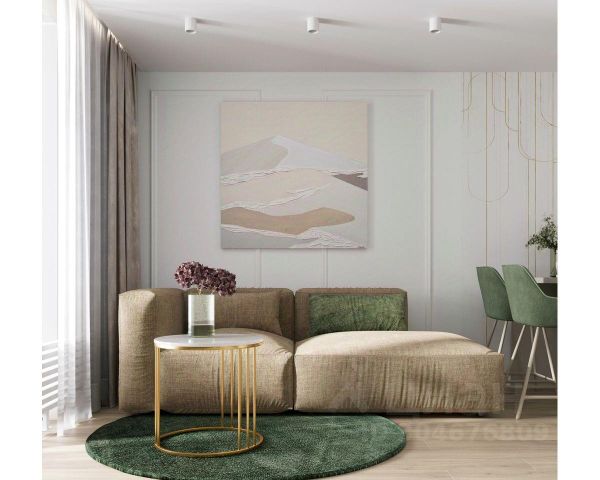 Обои под покраску, плинтуса, натяжные потолки с заглушками, межкомнатные двери с фурнитурой, розетки с заземлением, универсальные рамки, выключатели.