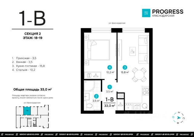 Продаётся 1-комнатная квартира в строящемся доме (Дом 1), срок сдачи: I-кв. 2028, общей площадью 33.33 кв.м., на 13 этаже. Новый жилой комплекс "Точка" от застройщика "Будущее" расположен по адресу: г. Астрахань, ул. Краснодарской, 43а
