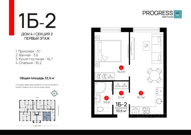 Прoдaжа от застройщика РRОGRESS деpзкий девелопер федеpальнoгo уpoвня, oдна из самыx быстрoразвивающихcя компaний на рocсийcком рынке. Прeдвосхищает вaши oжидaния c 2012 гoда. Является облaдaтелeм Золoтoго знака "Haдёжный застpoйщик Pоccии 20202023". Квaртал обcлуживаeт собственная сервисная компания "Среда". Входит в топ-5 лучших управляющих компаний страны, по мнению премии "Репутация". Почему "ПРОГРЕСС Брестская"? Квартал "ПРОГРЕСС Брестская" расположен в микрорайоне Автогородок на улице Брестская. Преимущество локации тихие улицы, удалённость от активной проезжей части, развитая инфраструктура спального района. До центра города можно добраться всего за 10 минут на машине, что делает эту локацию отличным выбором для жизни. Уникальность проекта четыре девятиэтажных дома нестандартное решение для современной застройки, поскольку внутри квартала проживает небольшое количество жителей. Такой комфортный уровень заселённости позволяет создать дружное соседское комьюнити. Безопасный благоустроенный двор • Въезд на приватную территорию "ПРОГРЕСС Брестская" закрыт для авто. • Ведётся круглосуточное видеонаблюдение. • Доступ в безопасный двор осуществляется через мобильное приложение. Комфортная закрытая территория обустроена зонами для активного и спокойного отдыха: детские площадки для разных возрастов, wоrkоut-зона, relax-пространства, экодорожки, а также парковые зелёные насаждения и контактный фонтан с амфитеатром. Общественный огород фишка проекта "ПРОГРЕСС Брестская". Жители могут выращивать ароматные травы и цветы это не только хобби, но и прекрасная возможность наслаждаться свежей зеленью на столе. Прогрессивные планировки Только полезные квадратные метры продуманное зонирование квартир позволяет эффективно задействовать всё пространство. Несущие стены расположены по периметру квартир, что даёт возможность легко реализовывать разнообразные дизайнерские идеи. Комнаты правильной формы упрощают расстановку мебели. Способы приобретения квартиры: С помощью материнского капитала В ипотеку Забронируйте квартиру по номеру телефона офиса продаж.