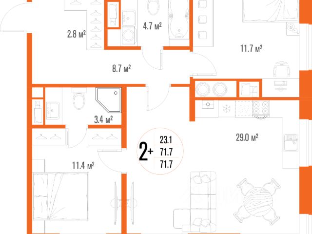 Продаётся 2-комнатная квартира в строящемся доме (Дом 4), срок сдачи: IV-кв. 2027, общей площадью 58.5 кв.м., на 6 этаже. Современный жилой комплекс "Лотос Парк" возводится в самом центре города. В шаговой доступности находятся достопримечательности и парки города. Рядом расположены школы, детские сады, торговые центры и бассейн. "Лотос парк" - это единое приватное пространство с кинотеатром, зоной барбекю, многофункциональной спортивной площадкой и двухуровневыми детскими зонами. Планировки квартир имеют нетривиальные проектировочные решения и впечатляют своим объемом (высота потолков от 3 до 3,4 м), вариативностью (площадь квартир от 40 до 130 кв. м., приватностью (от 2-х квартир на площадке) и завораживающими видами из панорамных окон. Квартира сдается с предчистовой отделкой с современным качественной инженерией и техническим оснащением: - Немецкий двухконтурный газовый котёл Vaillant turboFIT VUW 242/5-2 (H-RU). Автоматического типа с системами защиты и экономии топлива, мощностью 23,7 кВт для обогрева до 230 м2 - Входная дверь Torex DELTA-100 с тремя слоями теплоизоляции и шумоизоляции защитят от холода, сквозняков и шума из подъезда. В двери установлено два замка, с внешней стороны у дверей порошково-полимерное покрытие, устойчивое к ударам и царапинам - Видеодомофон. Расширенная системи видеонаблюдения, включающая более 300 камер, которые охватывают межквартирые площадки, лифты, подъездные холлы, придомовую территорию и паркинг - Видеонаблюдение. Закрытая приватная территория, автоматизированные ворота и пешеходные калитки, подключенные к системе видеодомофонии. Проектом предусмотрен пост физической охраны по ул. Трофимова - Остекление тёплым алюминиевым профилем Alutech W62. Группа компаний Alutech — ведущий производитель алюминиевых профильных систем в СНГ. Алюминиевый профиль класса А более прочный, по сравнению с ПВХ-профилем, и гарантирует высокий уровень шумоизоляции и теплоизоляции. - Премиальные лифты. В каждом подъезде пассажирские и грузопассажирские лифты премиум-класса: скоростные, бесшумные и энергоэффективные. Купить 2-комнатную квартиру на улице Трофимова в городе Астрахань.