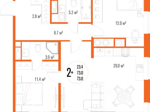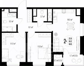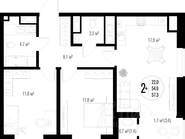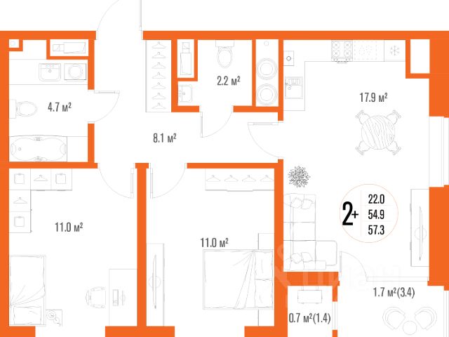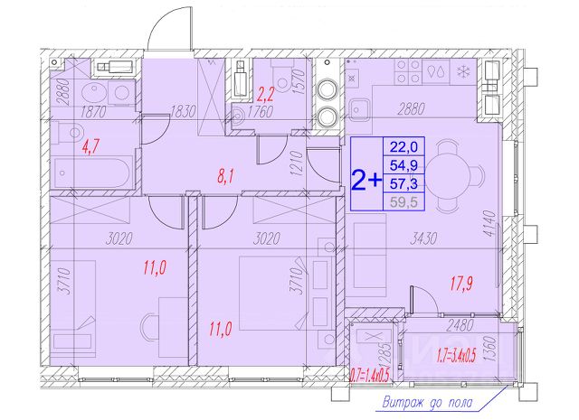 • ✅ Минимальная площадь: 54 м²