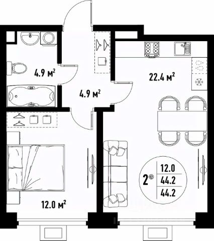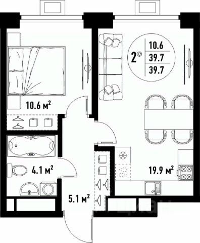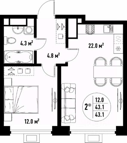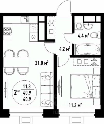 Количество комнат: 2