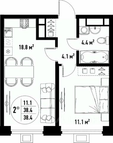 Жилая площадь: 18,64 кв.м.