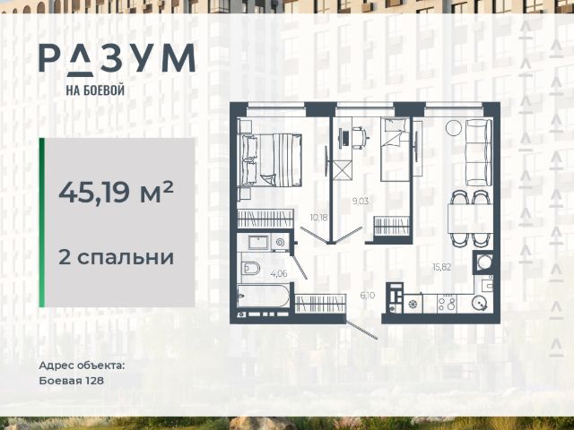 РАЗУМ на Боевой жилой комплекс компании РАЗУМ, создателя Сердце Каспия и Наследие. Проект из трех 18-этажных домов расположен в самом центре Советского района, на улице Боевая. В пешей доступности: - 3 школы; - 3 детских сада; - магазины; - автобусная остановка; Главная особенность проекта — угловое остекление, которое составляет 22% от всей площади. Все окна в квартирах находятся на высоте 62 см от пола, а на восемнадцатом этаже подоконник расположен всего в 42 см от пола. Во дворе-парке для детей создана своя развивающая среда, где каждый ребёнок может найти себе занятия и игры по душе. Здесь дети активно развиваются и познают окружающий мир. Игровые конструкции изготовлены из натуральных материалов, поэтому они не замерзают на морозе и не нагреваются на солнце. Необычные формы конструкций развивают образное мышление у детей и помогают им придумывать интересные и нестандартные игры. РАЗУМ на Боевой — это: - территория без машин; - безбарьерная среда; - единый эко-стиль в оформлении дворового пространства; - увеличенная площадь озеленения во дворе-парке; - многоуровневое освещение и подсветка фасадов; - видеонаблюдение; - эстетичные подъездные холлы; - колясочные и велосипедные зоны; - кладовые на каждом этаже. В проекте представлены 13 планировочных решений с площадью квартир от 21 м² до 62.2 м² с функциональным разделением на гостевую и приватные зоны.