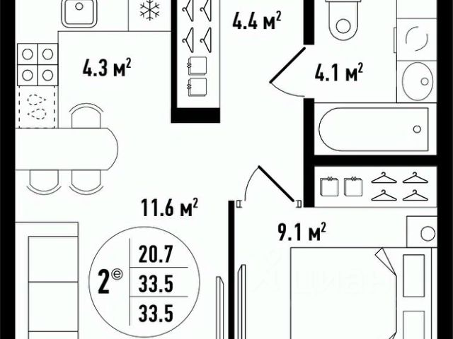 2-КОМНАТНАЯ КВАРТИРА 66,4 М²