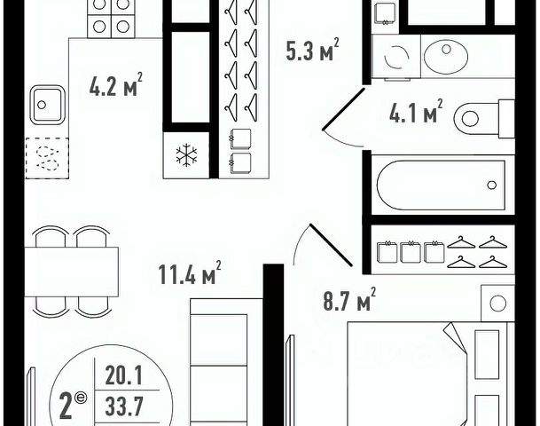 Гостиная — 20,3 м²