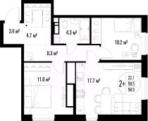 Продаётся 2-комнатная квартира в строящемся доме (Дом 1), срок сдачи: IV-кв. 2025, общей площадью 67.19 кв.м., на 14 этаже.