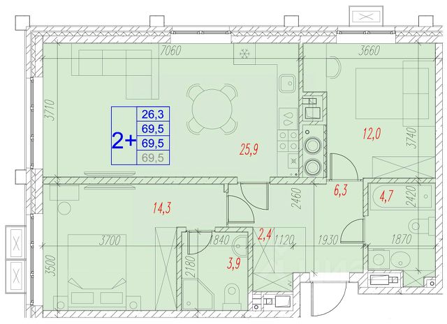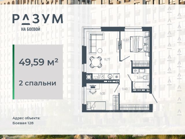 Продаётся 2-комнатная квартира в строящемся доме (Дом 4), срок сдачи: IV-кв. 2027, общей площадью 54.72 кв.м., на 6 этаже.