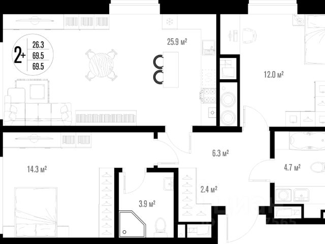 Планировки квартир имеют нетривиальные проектировочные решения и впечатляют своим объемом (высота потолков от 3 до 3,4 м), вариативностью (площадь квартир от 40 до 130 кв. м., приватностью (от 2-х квартир на площадке) и завораживающими видами из панорамных окон.