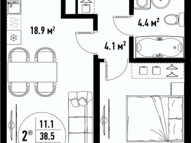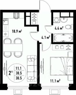 • ✅ Минимальная площадь: 38,5 м²