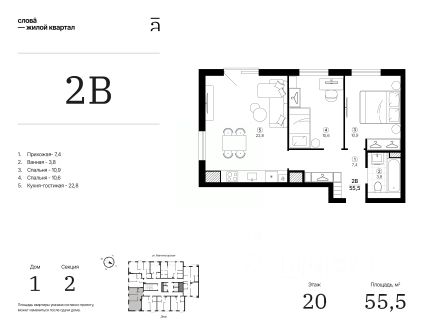 • разнообразные форматы квартир: от smart-планировок в 21,7 м² до просторных 3-комнатных квартир площадью 85,8 м²;