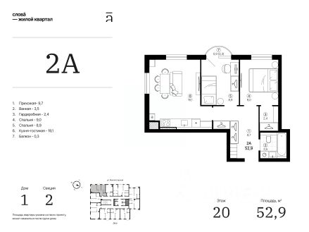 Продается просторная 2-комнатная квартира евроформата для большой семьи в строящемся эко-квартале "Калина Парк".