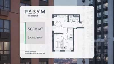 РАЗУМ на Звездной — высотный жилой комплекс компании РАЗУМ, создателя Сердце Каспия и Наследие. Здесь есть: развитый район, закрытая безопасная территория и транспортная доступность. Три 26-этажных дома расположены в границах ул. Звездной и Николая Островского. В пешей доступности: - 3 школы; - 4 государственных детских сада; - гипермаркет; - супермаркеты; - развивающие образовательные центры. РАЗУМ на Звездной — это: - 60 % озеленения в благоустройстве, детские игровые конструкции и зоны отдыха выполнены из экологичных материалов; - многоуровневое освещение территории с архитектурной подсветкой комплекса; - закрытая территория комплекса и видеонаблюдение по периметру и в холлах; - безбарьерная среда на территории жилого комплекса: удобство для велосипедистов, родителей с маленькими детьми и путешественников с большими чемоданами; - уютная зона ожидания с мягкой мебелью в холлах проекта и раздельные зоны под колясочные и велосипедные; - кладовые помещения на каждом этаже. В проекте РАЗУМ на Звездной представлено 13 планировочных решений от 21,08 м² до 63,39 м². Есть квартиры с предчистовой отделкой. В квартирах выровнены стены, выполнена полусухая стяжка пола, установлены радиаторы и трехконтурный газовый котел. В квартиру заведено электричество и установлена входная дверь.