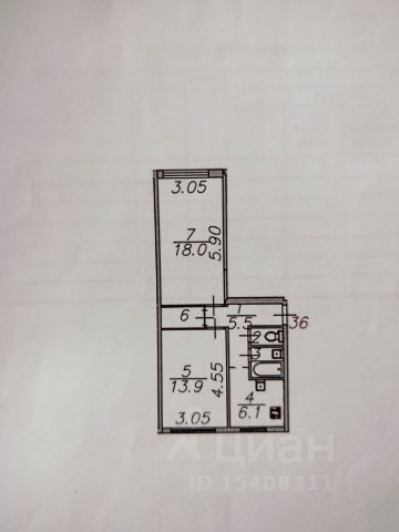 Жилая площадь - 36,2 кв.м