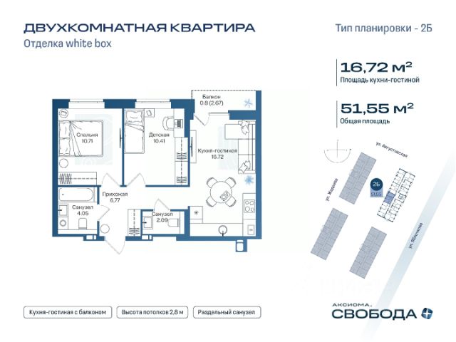 2-комнатные квартиры в жилом комплексе Аксиома.Свобода плюсЖК «Аксиома.Свобода плюс»