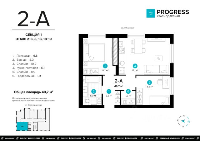 Продаётся 2-комнатная квартира в строящемся доме (Дом 1), срок сдачи: I-кв. 2028, общей площадью 49.72 кв.м., на 18 этаже. Новый жилой комплекс "Точка" от застройщика "Будущее" расположен по адресу: г. Астрахань, ул. Краснодарской, 43а