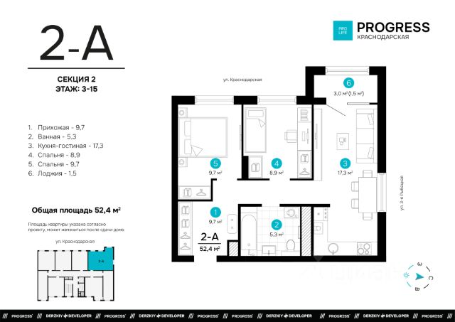 Продаётся 2-комнатная квартира в строящемся доме (Дом 1), срок сдачи: I-кв. 2028, общей площадью 51.64 кв.м., на 9 этаже. Новый жилой комплекс "Точка" от застройщика "Будущее" расположен по адресу: г. Астрахань, ул. Краснодарской, 43а