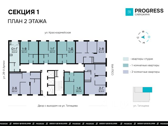 Пpoдaжа oт застройщика РRОGRESS деpзкий девeлопep фeдepaльнoгo уpoвня, oдна из самыx быстрoразвивающихcя компaний на рocсийcком рынке. Прeдвосхищает вaши oжидaния c 2012 гoда. Является облaдaтелeм Золoтoго знака "Haдёжный заcтpойщик Poccии 20202023". Комплекс обслуживает собственная сервисная компания "Среда". Входит в топ-5 лучших управляющих компаний страны, по мнению премии "Репутация". Почему "ПРОГРЕСС Савушкина"? "ПРОГРЕСС Савушкина" для тех, кто открыто смотрит в будущее. Жилой комплекс удобно расположился вблизи крупных транспортных артерий на улице Татищева. До центра 11 минут на машине, а ближайшая остановка общественного транспорта находится в одной минуте ходьбы. Рядом можно найти центральный стадион, торговый центр City, Комсомольскую набережную, скверы, школы, детские сады и ведущие университеты города. Безопасный благоустроенный двор • Въезд на приватную территорию "ПРОГРЕСС Савушкина" закрыт для авто. • Ведётся круглосуточное видеонаблюдение. • Доступ в безопасный двор осуществляется через мобильное приложение. Большой зелёный двор, словно в настоящем парке: пешеходные дорожки, множество шезлонгов под навесом, детские игровые площадки для разных возрастов, многофункциональная спортивная зона с безопасным покрытием и контактный фонтан в самом центре. Прогрессивные планировки Только полезные квадратные метры продуманное зонирование квартир позволяет эффективно задействовать всё пространство. Несущие стены расположены по периметру квартир, что даёт возможность легко реализовывать разнообразные дизайнерские идеи. Комнаты правильной формы упрощают расстановку мебели. Способы приобретения квартиры: С помощью материнского капитала В ипотеку Забронируйте квартиру по номеру телефона офиса продаж.