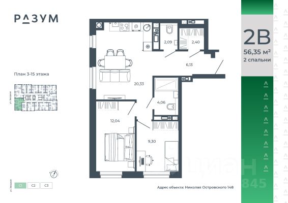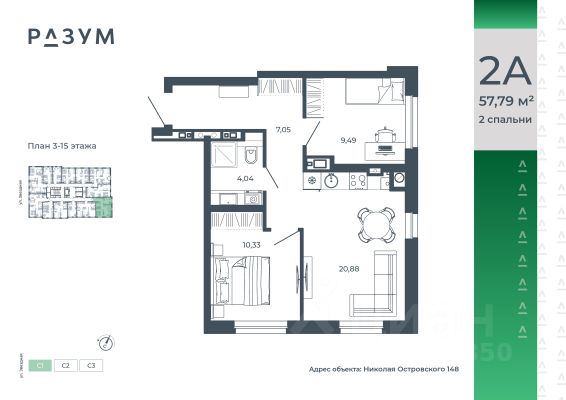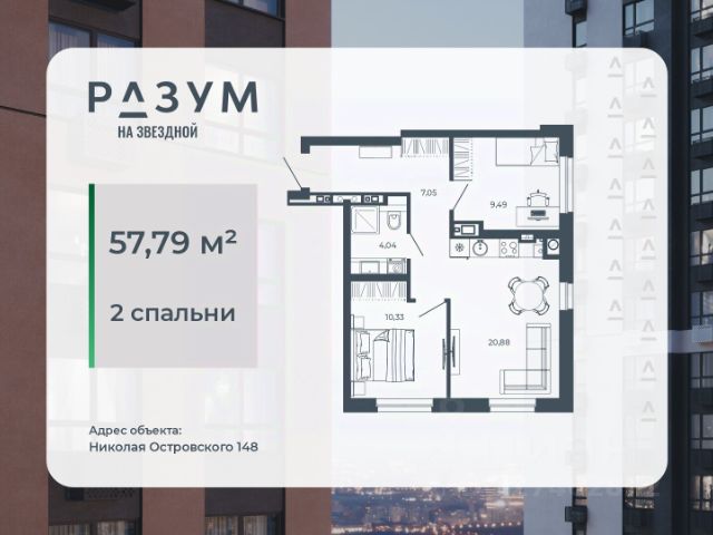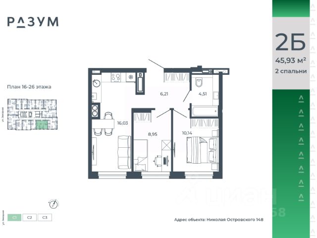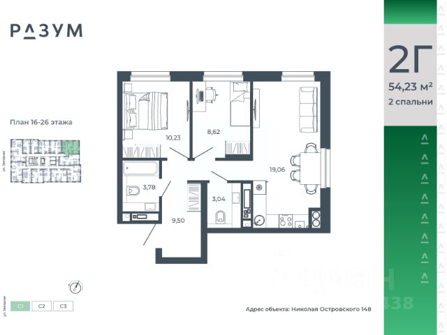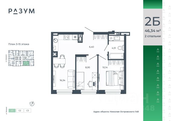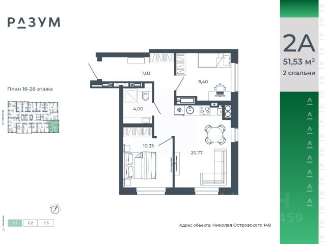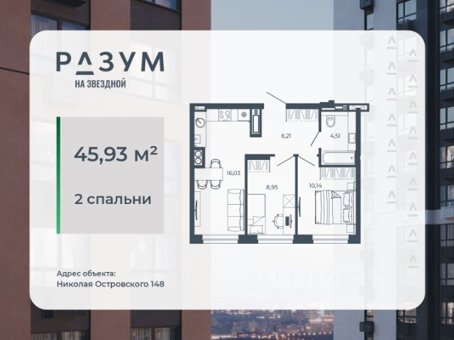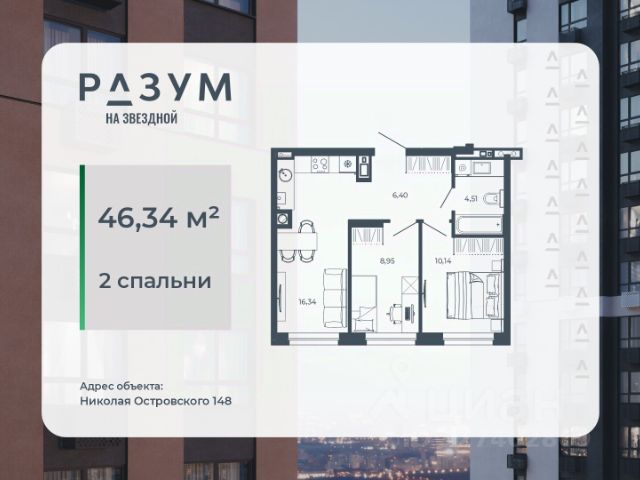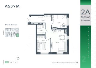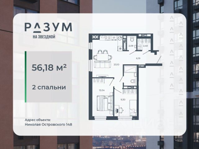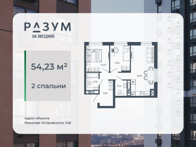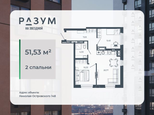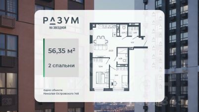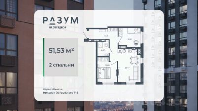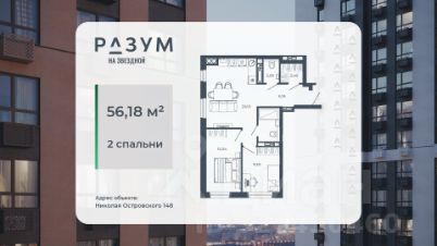 РАЗУМ на Звездной — высотный жилой комплекс компании РАЗУМ, создателя Сердце Каспия и Наследие. Здесь есть: развитый район, закрытая безопасная территория и транспортная доступность. Три 26-этажных дома расположены в границах ул. Звездной и Николая Островского. В пешей доступности: - 3 школы; - 4 государственных детских сада; - гипермаркет; - супермаркеты; - развивающие образовательные центры. РАЗУМ на Звездной — это: - 60 % озеленения в благоустройстве, детские игровые конструкции и зоны отдыха выполнены из экологичных материалов; - многоуровневое освещение территории с архитектурной подсветкой комплекса; - закрытая территория комплекса и видеонаблюдение по периметру и в холлах; - безбарьерная среда на территории жилого комплекса: удобство для велосипедистов, родителей с маленькими детьми и путешественников с большими чемоданами; - уютная зона ожидания с мягкой мебелью в холлах проекта и раздельные зоны под колясочные и велосипедные; - кладовые помещения на каждом этаже. В проекте РАЗУМ на Звездной представлено 13 планировочных решений от 21,08 м² до 63,39 м². Есть квартиры с предчистовой отделкой. В квартирах выровнены стены, выполнена полусухая стяжка пола, установлены радиаторы и трехконтурный газовый котел. В квартиру заведено электричество и установлена входная дверь.