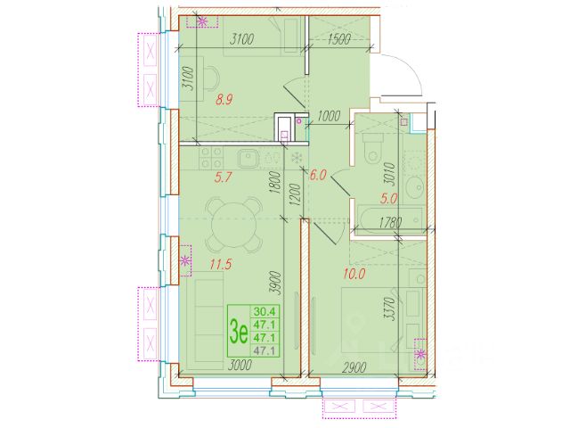 • ✅ Минимальная площадь: 46,2 м²