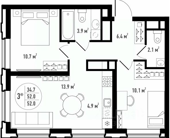 163 857 ₽/м²
