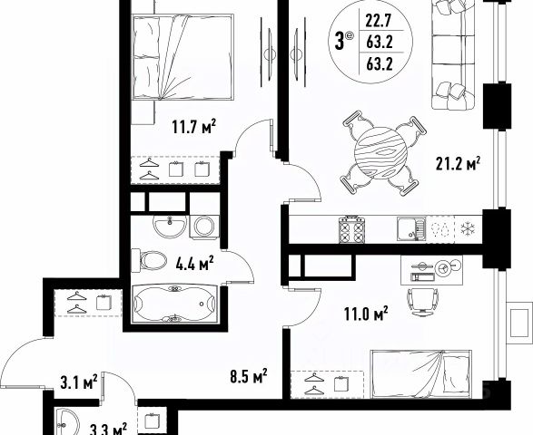 РАЗУМ на Звездной — высотный жилой комплекс компании РАЗУМ, создателя Сердце Каспия и Наследие. Здесь есть: развитый район, закрытая безопасная территория и транспортная доступность. Три 26-этажных дома расположены в границах ул. Звездной и Николая Островского. В пешей доступности: - 3 школы; - 4 государственных детских сада; - гипермаркет; - супермаркеты; - развивающие образовательные центры. РАЗУМ на Звездной — это: - 60 % озеленения в благоустройстве, детские игровые конструкции и зоны отдыха выполнены из экологичных материалов; - многоуровневое освещение территории с архитектурной подсветкой комплекса; - закрытая территория комплекса и видеонаблюдение по периметру и в холлах; - безбарьерная среда на территории жилого комплекса: удобство для велосипедистов, родителей с маленькими детьми и путешественников с большими чемоданами; - уютная зона ожидания с мягкой мебелью в холлах проекта и раздельные зоны под колясочные и велосипедные; - кладовые помещения на каждом этаже. В проекте РАЗУМ на Звездной представлено 13 планировочных решений от 21,08 м² до 63,39 м². Есть квартиры с предчистовой отделкой. В квартирах выровнены стены, выполнена полусухая стяжка пола, установлены радиаторы и трехконтурный газовый котел. В квартиру заведено электричество и установлена входная дверь.