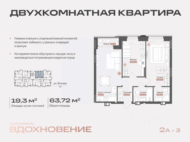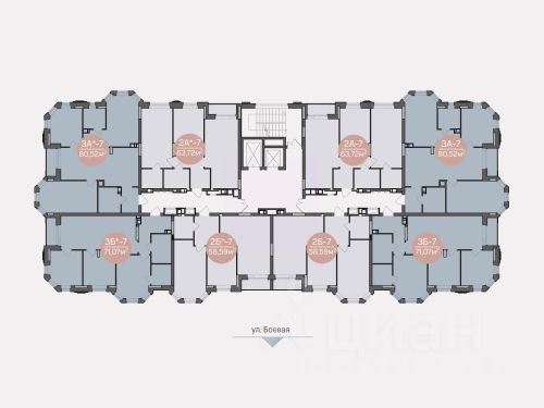 Продаётся 3-комнатная квартира в строящемся доме (Дом 4), срок сдачи: IV-кв. 2027, общей площадью 71.82 кв.м., на 12 этаже.