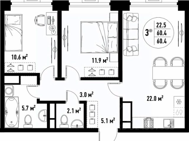 126 059 ₽/м²