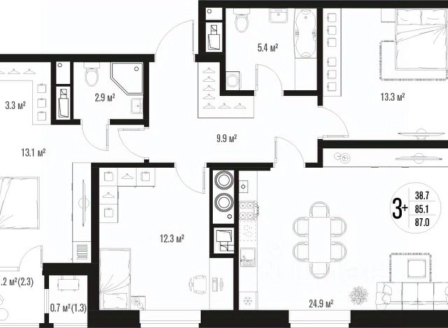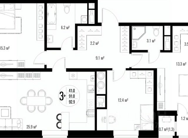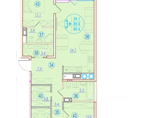 Жилой квартал "Семейный" это современный проект с продуманным подходом к организации пространства, в котором сочетаются уют, функциональность и комфорт для будущих жильцов. Комплекс состоит из домов II очередей. Срок сдачи в эксплуатацию I очереди 1 квартал 2025 года. Начало строительства II очереди 1 квартал 2025. Количество квартир в доме 327. Высота потолков 2,80 м. В каждом подъезде будет установлен бесшумный грузопассажирский лифт. На территории жилого квартала расположен двор-парк площадью 0,4 Га. Первый этаж жилой, за исключением нескольких общественных зон: гостевой санузел; зона для вашего питомца "Чистые лапки"; пеленальная зона. Комплекс сочетает в себе все преимущества спального района: развитую инфраструктуру и отсутствие высокого автомобильного трафика, что напрямую влияет на его экологичность. Квартира в ЖК "Семейный" прекрасно подойдет и для семей с детьми, и для молодых людей, следящих за своим здоровьем, а также для пожилых людей. Прямая продажа от застройщика RES DEVELOPMENT Продается квартира в строящемся 10-ти этажном монолитно-кирпичном доме жилого квартала "Семейный". Просторная евротрёхкомнатная квартира площадью 61,53 м² идеально подойдет для большой семьи. Квартира имеет 3 изолированные друг от друга и от коридора комнаты. Площадь комнат 10,01 м², 9,57 м² и 11,62 м². Балкон в квартире имеет неоспоримые преимущества. На площади 2,07 м² можно оборудовать еще одно место для работы или отдыха. Санузел в квартире раздельный. В ванной площадью 2,9 м² можно разместить всю необходимую сантехнику и прачечную зону. Площадь туалета 1,55 м². Светлая кухня-гостиная площадью 13,93 м² станет общим местом отдыха для всех членов семьи. Встречать и провожать жильцов и гостей квартиры будет прихожая площадью 9,73 м², которую можно зонировать по своему усмотрению, добавив необходимые именно для вас функциональные зоны. Высота потолков в квартире 2,80 м. В квартире будет установлен двухконтурный газовый котел, а также будут возведены пазогребневые межкомнатные перегородки, что при необходимости дает возможность реализовать проект по своему дизайну. Двухкамерный стеклопакет, предусмотренный в квартире, защитит вас от пыли и шума, а качественную входную дверь не придется менять после заселения.