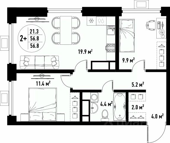 Имеются две лоджии , одна из спальной комнаты, другая из гостиной,