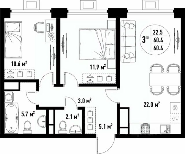 Арт. 129220027 В продаже 3 кв в развивающемся районе Автогородок, остановка рядом, школа в 2 минутах, садик рядом, поликлиника, магазины, магнит, пятерочка, ВБ в пешей доступности.