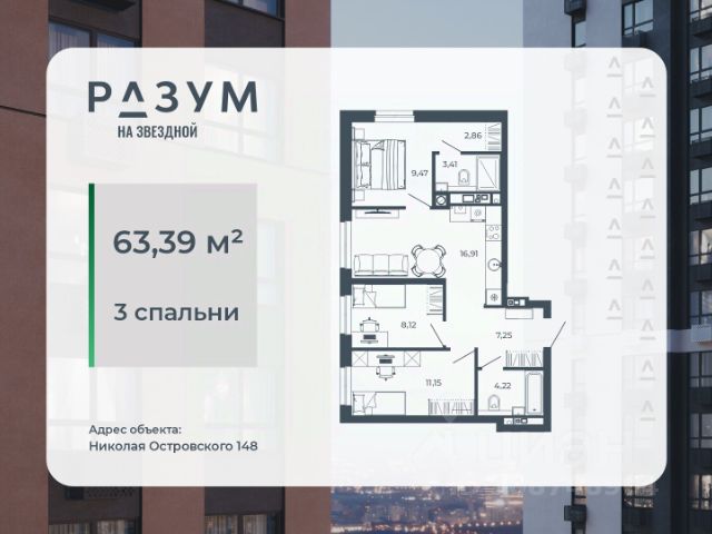 РАЗУМ на Звездной — высотный жилой комплекс компании РАЗУМ, создателя Сердце Каспия и Наследие. Здесь есть: развитый район, закрытая безопасная территория и транспортная доступность. Три 26-этажных дома расположены в границах ул. Звездной и Николая Островского. В пешей доступности: - 3 школы; - 4 государственных детских сада; - гипермаркет; - супермаркеты; - развивающие образовательные центры. РАЗУМ на Звездной — это: - 60 % озеленения в благоустройстве, детские игровые конструкции и зоны отдыха выполнены из экологичных материалов; - многоуровневое освещение территории с архитектурной подсветкой комплекса; - закрытая территория комплекса и видеонаблюдение по периметру и в холлах; - безбарьерная среда на территории жилого комплекса: удобство для велосипедистов, родителей с маленькими детьми и путешественников с большими чемоданами; - уютная зона ожидания с мягкой мебелью в холлах проекта и раздельные зоны под колясочные и велосипедные; - кладовые помещения на каждом этаже. В проекте РАЗУМ на Звездной представлено 13 планировочных решений от 21,08 м² до 63,39 м². Есть квартиры с предчистовой отделкой. В квартирах выровнены стены, выполнена полусухая стяжка пола, установлены радиаторы и трехконтурный газовый котел. В квартиру заведено электричество и установлена входная дверь.