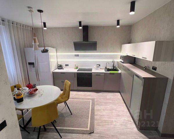 В кухне установлен современный кухонный гарнитур .