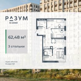 РАЗУМ на Боевой жилой комплекс компании РАЗУМ, создателя Сердце Каспия и Наследие. Проект из трех 18-этажных домов расположен в самом центре Советского района, на улице Боевая. В пешей доступности: - 3 школы; - 3 детских сада; - магазины; - автобусная остановка; Главная особенность проекта — угловое остекление, которое составляет 22% от всей площади. Все окна в квартирах находятся на высоте 62 см от пола, а на восемнадцатом этаже подоконник расположен всего в 42 см от пола. Во дворе-парке для детей создана своя развивающая среда, где каждый ребёнок может найти себе занятия и игры по душе. Здесь дети активно развиваются и познают окружающий мир. Игровые конструкции изготовлены из натуральных материалов, поэтому они не замерзают на морозе и не нагреваются на солнце. Необычные формы конструкций развивают образное мышление у детей и помогают им придумывать интересные и нестандартные игры. РАЗУМ на Боевой — это: - территория без машин; - безбарьерная среда; - единый эко-стиль в оформлении дворового пространства; - увеличенная площадь озеленения во дворе-парке; - многоуровневое освещение и подсветка фасадов; - видеонаблюдение; - эстетичные подъездные холлы; - колясочные и велосипедные зоны; - кладовые на каждом этаже. В проекте представлены 13 планировочных решений с площадью квартир от 21 м² до 62.2 м² с функциональным разделением на гостевую и приватные зоны.