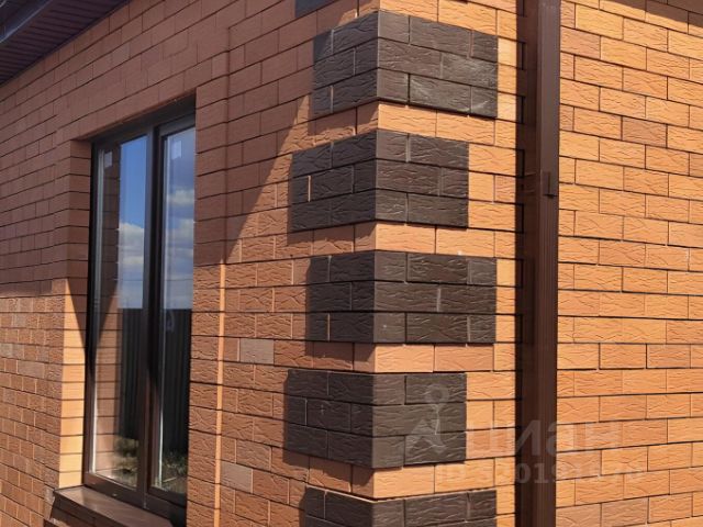 Дом облицован клинкерным кирпичиком с красивым уличным освещением.