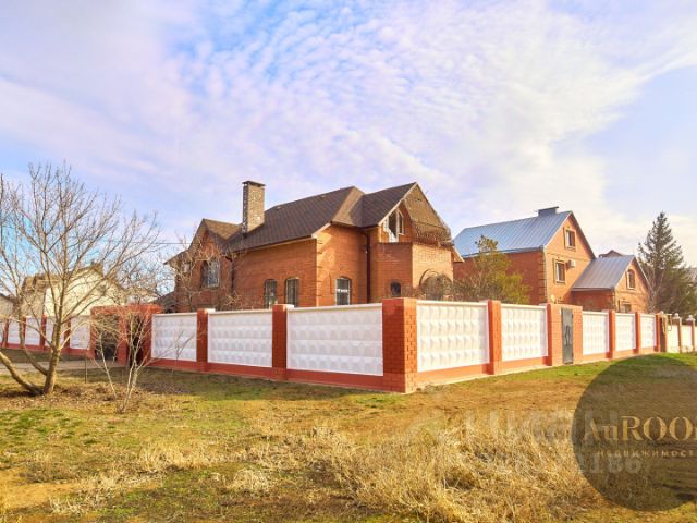 Дом располагается на 10 сотках земли, участок ровный. По периметру участка установлен забор из железобетонных плит с кирпичными вставками.