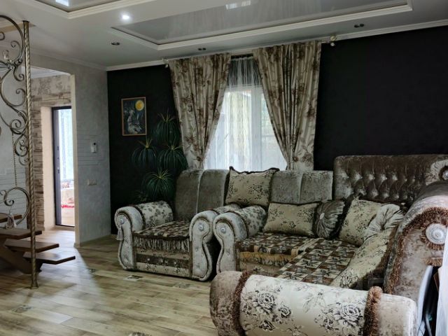 Дом обшит сайдингом, что обеспечивает дополнительную защиту и эстетичный внешний вид. Внутри — пять отдельных комнат, кухня и совмещенный санузел с ванной, что делает планировку удобной для проживания семьи. Все коммуникации подключены: электричество, газ, водоснабжение. Отопление работает на АОГВ, горячая вода подается через бойлер. В доме остаётся вся мебель и бытовая техника, включая два телевизора, холодильник, стиральную машину, микроволновую печь, духовку, водонагреватель, плиту и посуду, что позволяет заселиться сразу после покупки.