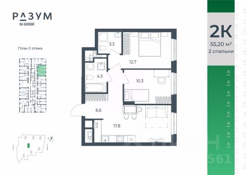 РАЗУМ на Боевой жилой комплекс компании РАЗУМ, создателя Сердце Каспия и Наследие. Проект из трех 18-этажных домов расположен в самом центре Советского района, на улице Боевая. В пешей доступности: - 3 школы; - 3 детских сада; - магазины; - автобусная остановка; Главная особенность проекта — угловое остекление, которое составляет 22% от всей площади. Все окна в квартирах находятся на высоте 62 см от пола, а на восемнадцатом этаже подоконник расположен всего в 42 см от пола. Во дворе-парке для детей создана своя развивающая среда, где каждый ребёнок может найти себе занятия и игры по душе. Здесь дети активно развиваются и познают окружающий мир. Игровые конструкции изготовлены из натуральных материалов, поэтому они не замерзают на морозе и не нагреваются на солнце. Необычные формы конструкций развивают образное мышление у детей и помогают им придумывать интересные и нестандартные игры. РАЗУМ на Боевой — это: - территория без машин; - безбарьерная среда; - единый эко-стиль в оформлении дворового пространства; - увеличенная площадь озеленения во дворе-парке; - многоуровневое освещение и подсветка фасадов; - видеонаблюдение; - эстетичные подъездные холлы; - колясочные и велосипедные зоны; - кладовые на каждом этаже. В проекте представлены 13 планировочных решений с площадью квартир от 21 м² до 62.2 м² с функциональным разделением на гостевую и приватные зоны.