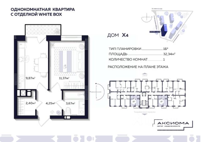 Продаётся 1-комнатная квартира в строящемся доме (Дом 4), срок сдачи: IV-кв. 2026, общей площадью 32.34 кв.м., на 5 этаже. Аксиома на Тихореченской Место, где время замедляется, чтобы вы могли насладиться жизнью, вдали от городской суеты. Современный комфорт, объединенный с природой, дополненный североевропейской эклектикой делает этот проект настоящим местом силы! Местом, где хочется жить, творить, любить!