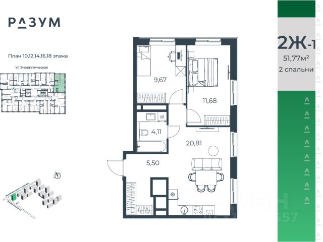 "РАЗУМ на Энергетической" — первый масштабный жилой район от девелопера "РАЗУМ" площадью 12 гектаров в мкр. Бабаевского на ул. Энергетическая, созданный по концепции "город в городе". Это 4 квартала — 18 домов от 10 до 18 этажей с собственными школой, детским садом и торговым центром. В каждом квартале есть свой двор-парк с локациями развлечений и отдыха, беседками и цветущими растениями. А также прогулочный бульвар "Свой центр" с площадками для тихого отдыха и активностей с отдельной экосистемой коммерции для всей семьи. 12 га застройка Детский сад на 250 мест Школа Торговый центр 2,5 км велодорожки с двусторонним движением "Город в городе" со своей коммерцией Спортивные пространства 60 % озеленения Зона ожидания в холле Кладовые в 14 и 18-этажных башнях Квартиры с балконами Квартиры с террасами на 1 этажах, выходящие в закрытый двор Индивидуальное отопление