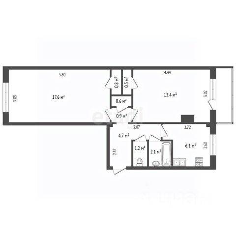• ✅ Минимальная площадь: 43,3 м²
