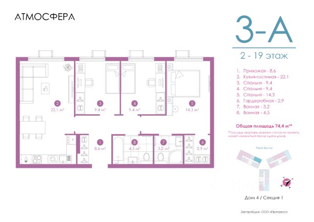 Жилой комплекс "Атмосфера" — уникальный проект линейки PRO MAX. Многоуровневая закрытая дворовая территория, авторская концепция холлов, сервис на уровне пятизвёздочного отеля. Уединённая локация между двумя водными пространствами — рекой Волгой и Приволжским затоном. На безопасной приватной дворовой территории ведётся круглосуточное видеонаблюдение. Для самых маленьких здесь оборудован детский игровой центр — кидс клаб, а для взрослых — премиальная кофейня с чарующим видом на Волгу. "Атмосфера" выводит понятие "комфорт" на совершенно иной уровень. Каждая деталь говорит о стремлении к совершенству.