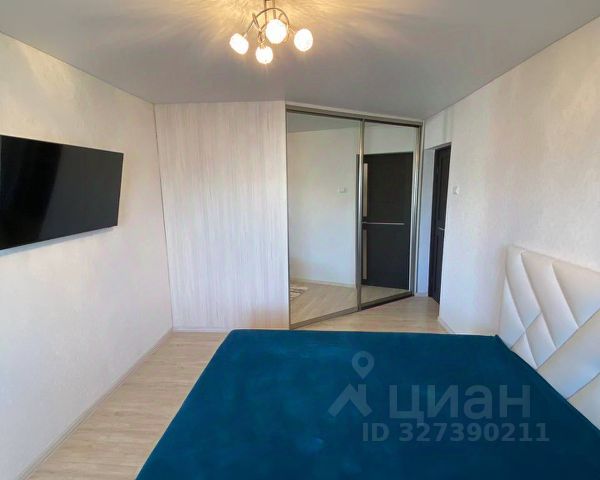 — в комнате —шкаф купе, кровать, сплитсистема