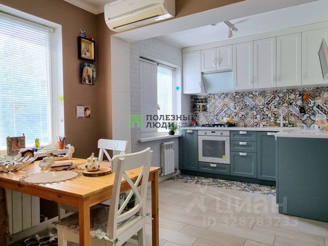 Стильная кухня с мраморной столешницей, встроенная система очищения и фильтрации воды. Кухня совмещена с комнатной, в итоге просторная столовая с вместительными шкафами для хранения.